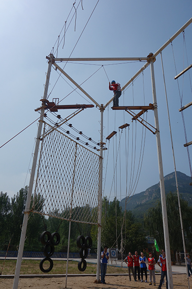 9月20日一早,正式訓(xùn)練之前,教練先是通過團(tuán)隊(duì)熔煉,打破堅(jiān)冰、營(yíng)造團(tuán)隊(duì)氛圍,建立起了相互信任的基礎(chǔ)。緊接著在教練員的指導(dǎo)下,參訓(xùn)人員分成兩隊(duì)在漢諾塔、高空斷橋、空中單杠、時(shí)速極限、激情150活動(dòng)上進(jìn)行了比拼。其中漢諾塔、激情150訓(xùn)練,使大家強(qiáng)烈意識(shí)到團(tuán)隊(duì)成功是個(gè)人成功的基礎(chǔ);個(gè)人成功必須建立在團(tuán)隊(duì)其他成員的共同努力與協(xié)作的基礎(chǔ)之上;高空斷橋、空中單杠等高空項(xiàng)目時(shí),團(tuán)隊(duì)每位成員必須膽大心細(xì),敢于挑戰(zhàn),相互鼓勵(lì),戰(zhàn)勝恐懼;整個(gè)訓(xùn)練項(xiàng)目下來,兩隊(duì)成員實(shí)力不分上下,各有優(yōu)勢(shì),但我們比的不是高低,比的不是結(jié)果,而是在整個(gè)過程中,我們收獲了什么,感悟了什么。