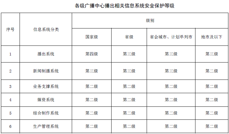 需要特殊說明的是,滿足基本安全防護(hù)要求是保證信息系統(tǒng)具有相應(yīng)等級安全保護(hù)能力的前提。但針對于不同的播出單位來說,廣播電視相關(guān)信息系統(tǒng)是一個(gè)整體,除了分層面采取各種安全措施,還應(yīng)從播出單位信息系統(tǒng)的業(yè)務(wù)特殊性等方面考慮總體性要求,保證信息系統(tǒng)的整體安全保護(hù)能力。